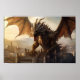 Epic Dragon Over Medieval City Poster