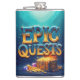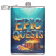 En sjudande vattenfärgsmålning med frasen "Epic Quests" i ett fet, konstnärligt skript. Brev är förtrollat av guld och omges av en skattkista som flödar över med juveler och guld mynt. Bakgrunden är en djup blå, som påminner om havsdjupen, som ökar känslan av äventyr och skattetjakt.