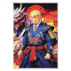 Denna fängslande teckning skildrar president Trump som en mäktig samuraikrigare som står konfidentiellt mitt i en grym bakgrund. Han är klädd i den traditionella blå och guld samurai-pansonen, håller en katana och omges av våldsamma, mytiska demoner. Det intensiva röda himmel och lågorna förvärrar den dramatiska och fantastiska atmosfären och skapar denna bild som en slående bild av en heroisk stridsplats.
