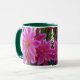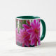 Vit och jägare grönt 11 oz. ringkamera mugg med en bild på båda sidor av det vackra och spektakulära nattblåsande Epiphyllum, som ofta kallas orkidéskåp.