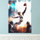 Denna dynamiska idrottskonst fångar adrenalinet i en episk fotbollsfångst, fryser spelaren i luften i en explosion av rörelse, ljus och kraft. En djärv hyllning till amerikansk fotbolls största ögonblick, som blandar filmisk action och modern konst, perfekt för fans, samlare och spelrum.