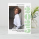 Eleganta och moderna examensbeviskort med examenkandidatens bästa vertikala (eller porträtt-) foto och examensår i överdimensionerad fetstil MINTGRÖN bokstavsstil, med tre anpassade rader för namn, högskola eller skola och år.