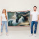 This enchanting artwork features a delicate double-exposure image of a horse, imbuing it with a ghostly glow and an otherworldly, fantastical quality. The horse's sleek, graceful form is highlighted in majestic detail, its long, flowing mane and tail shimmering with an ethereal light. Set against an atmospheric backdrop, the horse evokes mythical creatures like unicorns. This is a harmonious blend of reality and fantasy, rendered with artistic flair.
