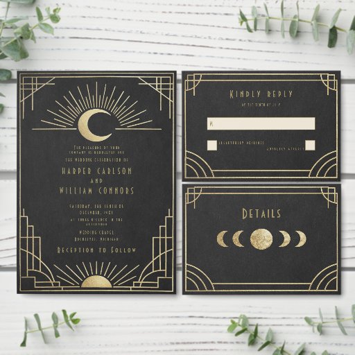 Equinox Art Deco celestial wedding Invitation Inbjudningar