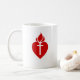 En behändig morgonpåminnelse som erbjuder din dag till guden. Denna mugg presenterar en sakral hjärta avbildar och erbjuda för den Fatima morgonen.