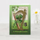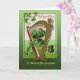 5” x 7” gratulationskort med ett vintage motiv av Harp of Erin krönt med ett grönt band och en vacker grön shamrock. En svart cylinder ligger på marken bredvid med ett grönt hattband. Den anpassningsbara texten på insidan lyder “May you always walk in the sunshine. May you never want for more. May Irish angels rest their wings right beside your door. May your pockets be heavy and your heart be light, May good luck pursue you each morning, noon and night.” Se hela samlingen av St. Patrick's Day-kort under kategorin KORT & DEKAL under HELGDAGAR.