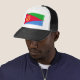 flagga domineras av en röd triangel som sträcker sig från hissarna till flygplanet med kompletterande grönt och blå trianglar över och under. Grönt står för land:s fertilitet inom jordbruket. blå havsbestånd (rött hav), och rött för blodets borttappad i frihetskampen. I den röda triangeln ersätter en symbol för krans av gult med 14 löv på vardera sidan, som kommer från 1952 års flagga, EPLF-flagga gult stjärna.
