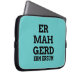 Dorky- och roligt-typografi-textdesign Laptop sleeve med ord från Ermahgerds populära minne. Ermahgerd är ett mycket okänsligt och lättvindigt sätt att säga "Åh Gud!" Anpassa med egen text och bakgrund färg. Använda en översättare som den här [http://ermahgerd.jmillerdesign.com/#!/translate] för att göra personligen ännu mer fånig!