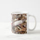 Ernie som sock monkeyhöst löv rånar kaffemugg
