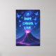 Omvandla vilket rum som helst till en värld av fantasi med den här surrealistiska, pulserande arbetsytan. En vulkan utbryter inte med lava utan med galaxer, glödande fjärilar och textfragment som inspirerar dig till Dare. Skapa. Lev. Perfekt för drömmare, kreativ och alla som kärlek djärvt, påstående-skapar väggkonst. Lägg till färg och energi till ditt hem, kontor eller studio omedelbart.