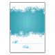 Vinterblått och vitt vinterkort med modern eskort från bröllop, med en vit gräns av snöflingor på ljusa turkobakgrunder. En perfekt för en vinter december bröllop. Fäst längs den prickade linjen om du vill ha ett vikat platskort tält stil.