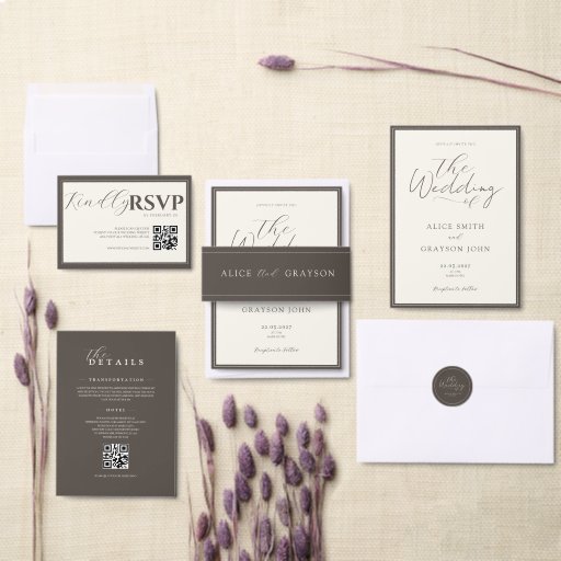 Espresso Beige Classic Modern Minimalist Wedding Spara Datumet