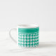 En snyggt Espressos-kaffe mugg, med en houndstandekontroll mönster i trending Emerald Grönt and white. Det finns ett vanligt band längst upp i mönster som du kan anpassa med namn eller någon text - eller lämna tomt.