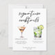 Den här chicen namnteckning cocktails list med enkel svart tyopgrafi över 2 drycker och deras ingredienser för din bröllop pub. Med en espresso martini och gin och tonic teckning läggs en coola till i lakan på menyn pub. Fyll i med parets namn och mottagningsdatum.