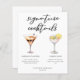 Den här chicen namnteckning cocktailmeny med anpassningsbar svart typografi över 2 drycker och deras ingredienser för din bröllop pub. En söt sommar Sangria och Mojito teckning lägger till en coola till pub-menyn. Fyll i med parets namn och mottagningsdatum.