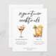 Den här chicen namnteckning cocktails Meny lakan har enkel svart tyopgrafi över 2 drycker och deras ingredienser för din bröllop pub. En espresso martini och Mai Tai teckning lägger till en coola till pub-menyn. Fyll i med parets namn och mottagningsdatum.