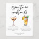 Denna eleganta lista över signaturodrycker har enkel svart typografi ovanför 2 drinkar och deras ingredienser för er bröllopsbar. En teckning av espresso martini och Pina Colada ger en cool touch till er dryckesmeny. Komplett med parets namn och datum för deras mottagning.