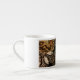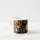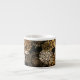 Vit espresso mugg med svart/brun/guld snyggt utskriven.