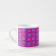 En söt liten Espressos-kaffe Mugg med mönster av hjärta och blommor i skuggor av magenta, rosa, lila och blått.