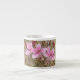 Rosa blommar mot burgundstjälkar och brungräs/grönt gräs.