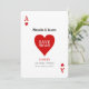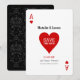 Anpassad bröllops- / förlovningsinbjudan för Spara datum med ett Las Vegas-ess av hjärtan spelkorttema. Anpassa båda sidor med din egen text!