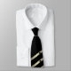 Mitt ess planlägger på en tie med guld- och mörka grå färgrandar med lite spadar.