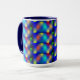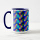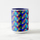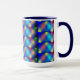 Imagem colorida nas cores azul claro e escuro, vermelho, amarelo e verde, colocadas de forma repetitida e com tons que podem causar ilusão de que estejam curvadas ou que os objetos estejam 'tortos'