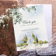The delicate greenery at the top and the charming garden ceremony scene at the bottom create a beautiful, nature-inspired design perfect for couples who celebrated their wedding in a garden, estate, vineyard, or outdoor venue. The layout highlights your names and wedding date while leaving space for a heartfelt message of appreciation to your guests.