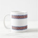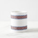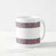 Kaffe mugg med estnisk plocka-up vävd bälte mönster från Järva-Jaani, Järvamaa, Estland. Den utpräglat mönstrade vävda bälte har varit en integrerad del av den estniska folkklänningen i århundraden. Bälte användes för att stödja ryggen, medan mönster själva förde med sig tur och skyddade den fattigare. Vävning av plockor är en del av vårt kulturarv.