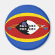 Eswatinis flagga har omsorgsfullt befunnit sig i passande till denna magnets cirkulär. Ett dekorativt sätt att främja Swazi-kulturen.