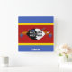 Eswatini Flagga Dazzling Patriotic Square Wall Clock i färg och inslag i Eswatinis nationella flagga som täcker framsidan av klockan. Flagga kompletteras med texten "Eswatini" på grund. Anpassadet Text är fullt ut med funktionen "Anpassa den!". Du kan ändra den, ta bort den eller lägga till en egen. Den här charmerande utformningen är den häpnadsväckande presenten och den underbara show biet på väggen. © LänderAvVärlden