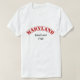 På denna skjorta förolämpar den bekymrade texten i röda något att säga MARYLAND i bågen och de nedanföra något att säga etablerad 1788 för svart text.
