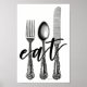 EAT skrivet i kursivt material över finare silvergods, av Monkey Business Graphic Design.