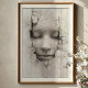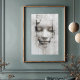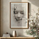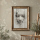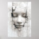 Den här slående teckningen fångar upp ett skrämmande vackert utseende som kommer från en sprucken och sprödande vägg. Serenuttrycket och det slutna ögon väcker en känsla av lugn och självbelåtenhet. Den ömtåliga tonen av ljus och skugga på det släta, porslinsliknande yta i ansikte står i kontrast till det grova, fragmenterade struktur i muren, som skapar en övertygande sammanställning. Fotografiet stil betonar detaljrikedomen och realismen och uppmanar tittarna att fundera över den djupare innebörden bakom biet, kanske en reflektion över isolering, motståndskraft eller den gömt skönheten i lidande. Den här teckningen är en perfekt för dem som uppskattar tankeväckande bilder som skapar konversationer.