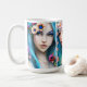 Eteralkvinnor med blommor i blåhålan kaffemugg