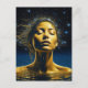 AI-konst som föreställer en vacker kvinna som badar i vattnet under stjärnorna försjunken i djupa tankar. Fredfull och stillsam mystisk konst.