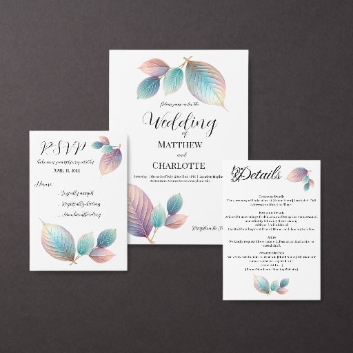 Den här bilden har en ren och sofistikerad design som är centrerad kring delikata löv med pastel-färgad. Löven har en genomskinlig, nästan eterisk kvalitet, med mjuka nyanser av blått, rosa och lavendel som blandas sömlöst. Den minimalistiska vita bakgrunden förstärker formgivningens elegans, teckning uppmärksammar de subtila detaljerna i lövet. Detta skapar en lugnande, naturinspirerad estetisk perfekt för modernt och romantiskt tillfälle.