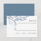 Den här elegantens botaniska OSA kort är designad för att samordna med vår Etheral Blue VVT Voccolor blommigt bröllop, och har en ren blå pastellfärg med blått blad överst på önskat svar och datum. Kort tillbaka till ett samordnat blått färg. En modern och klassam utformning för elegant chic bröllop under vilken säsong som helst. Vi kan byta färg, typsnitt och annat för att göra din design unik personlig. Kontakta oss via butiken eller skrivan på citronelladesign@gmail.com om du behöver hjälp eller anpassningsbar.