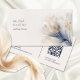 Det här unika affärskortet för professionell har en eterisk genomskinlig blå blomma från guld. Utformning av elegant för konstnärer, spa, bröllopsfixararna, evenemangsplanerare, kosmetologer, skönhetssalon... med skannerbar fyrkantskod på baksidan.