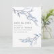 I det moderna botaniska bröllop spara datum i ren dammig, blå pastellfärgad pastellfärgning finns blått löv på den lämnat sidan där namn och bröllop anges. Baksidan av inbjudan har koordinerat det blå färg. Det här objektet är en del av en Etheral Blue-samling. Besök vår butik. Vi kan byta färg, typsnitt och annat för att göra din design unik personlig. Kontakta oss via butiken eller skrivan på citronelladesign@gmail.com om du behöver hjälp eller anpassningsbar.