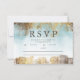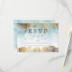 Modern och elegant bröllop OSA kort med abstrakt blå vattenfärgsmålning med guld-penseldrag.