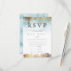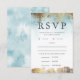 Modern och elegant bröllop OSA kort med abstrakt blå vattenfärgsmålning med guld-penseldrag. Det här svarskortet visar också hela valet av gäster att välja mellan.