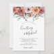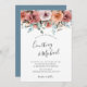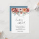 Vår "Etheral" bröllopsinbjudan visar dina bröllop-detaljer med gräns överst med exquisite handmålade vattenfärgblommor och löv i en blixtsnabb kombination av , dammiga ro, elfenben, persikor, grumlig skifferblått, grått och sagetoner. Kortets baksida i elegant skiffer/grumlig dammig blå skugga. Del av "Etheral in Dusty Blue" bröllop och evenemangsinsamling.