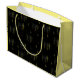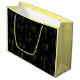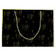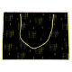 Gult, burgrå och vit bläckfisk och linjer i ett upprepat mönster på svart bakgrund tyder på en känsla av rörelse och energi.