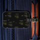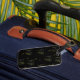 Gult, burgrå och vit bläckfisk och linjer i ett upprepat mönster på svart bakgrund tyder på en känsla av rörelse och energi.