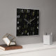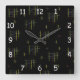 Gult, burgrå och vit bläckfisk och linjer i ett upprepat mönster på svart bakgrund tyder på en känsla av rörelse och energi.