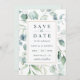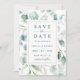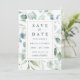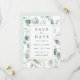 I inbjudan till bröllop spara datum finns färgade vattenfärgseukalyptus och botaniska grönt löv med guld-rektangeln ram.