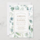 Den här bröllopsinbjudan innehåller färgade eucalyptus med vattenfärg och botaniska gröntar löv med guld-rektangeln ram.