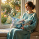 Den här fantastiska teckningen fångar kärnan av en ethersk gudinna, som är inkapslad i en flytande vattenfärgad gryga med delikat innehåll av blommigt. Mjuka blå och gyllene nyanser smälter sömlöst och skapar en drömmande, känslosam ambians som känns både magisk och trygg. Hennes långa, flödande hårdofter med vinden, krönta av invecklade blommar som förbättrar hennes naturliga elegans. Ljusets glödande hörn i bakgrunden ger en vismisk, sagolik kvalitet, skapar biet-perfekten för älskare av fantasi, feminin skönhet och mjuk, bohemisk estetik. En vision av nåd och lugn, den här designen utstrålar tidlös charm och mystisk . AI skapade teckningar.