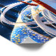 En känslig flicka står under ett glansigt månbelyst himmel, som håller en elegant fläkt med gyllene blommar. Hennes blomande kimono och kaskadande silver hårshimmer med eterljus, omgiven av mjukt glödande sakurapärl.